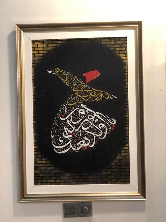 Hand-Painted Sufi Whirling Dervish Art, Arabic Calligraphy Wall Decor, Spiritual Islamic Painting, Framed Mystical Muslim Gift Step into the rhythm of divine love with “Dance of the Beloved,” an evocative hand-painted artwork that captures the essence of spiritual longing and union. This...